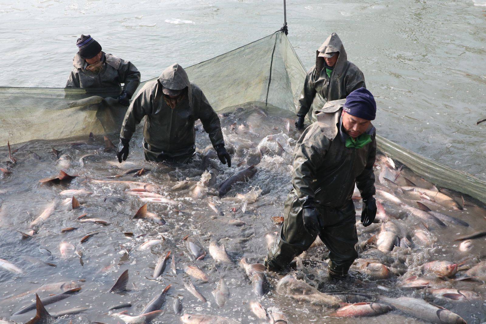 上昼时辰,随同主理东谈主“起网哺养”的提醒声响,整场行为迎来首个高涨。职责主谈主员协同发力,徐徐拉起千里甸甸的渔网,膏腴的鲜鱼在网中翻滚擢升,银鳞在阳光下能干着剔透色泽,引得现场搭客纷纷藏身围不雅、拍照迷恋,欣慰声与颂扬声此伏彼起,为静谧的冰湖注入了滚热活力。据了解,景阳湖水域生态优良,湖中鱼类以白鲢、草鱼、青鱼为主,全程当然孕育不投喂饲料,肉质细嫩鲜好意思,为本次哺养节奠定了优质基础。