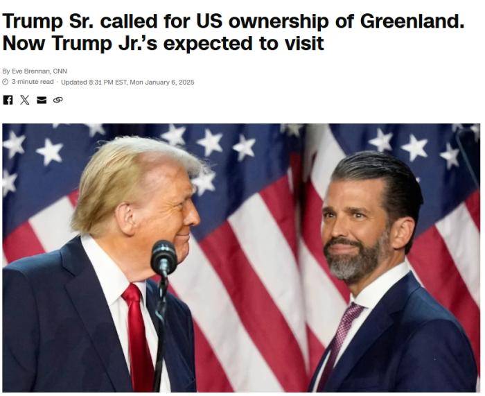 中新网1月7日电 据好意思国有线电视新闻网(CNN)报说念,好意思国当选总统特朗普宗子小特朗普瞻望将于当地时刻7日拜谒格陵兰岛。