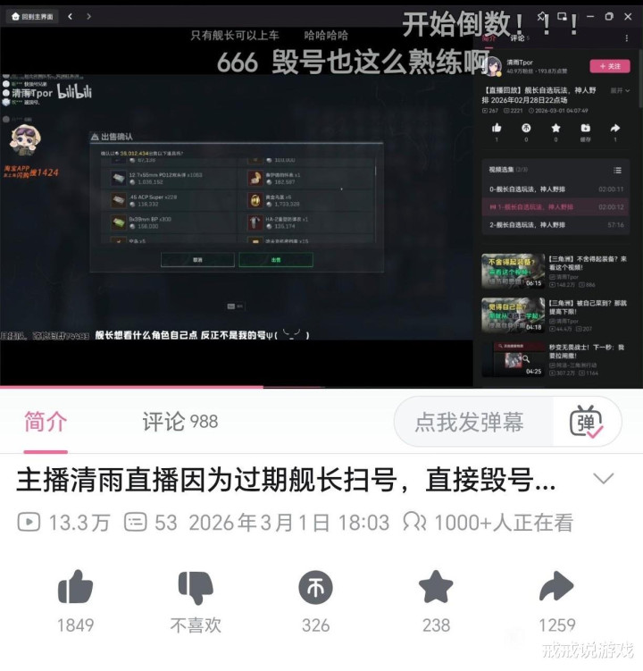 先给不了解的昆季捋一下本事线。受害者是一位S1赛季就驱动玩的老玩家,因为经常看小破站40万粉丝的主播某雨的直播,就给他上了舰长,每月自动续费那种。而舰长有一个福利,即是不错扫码让主播登录我方的游戏账号,可能是为了让主播帮打打任务能够互动一下。问题出在2月28日。这位玩家的舰长自动续费不知为何失败了,但他我方没小心到,以为还在灵验期。3月1日凌晨,他像日常同样扫码让主播登录了我方的账号。效果主播一登上去发现舰长已逾期,接下来的操作让所有东说念主王人看傻了。